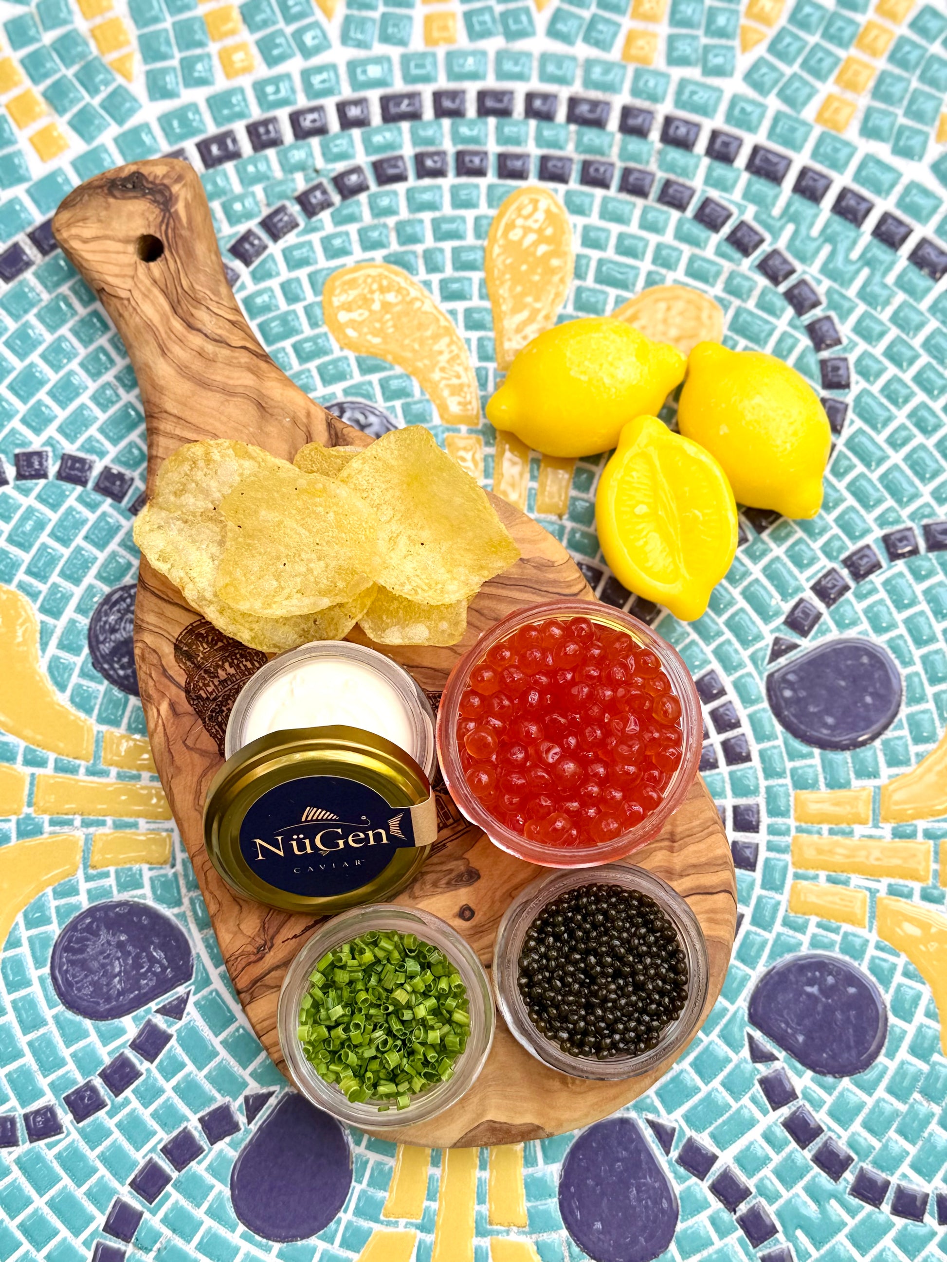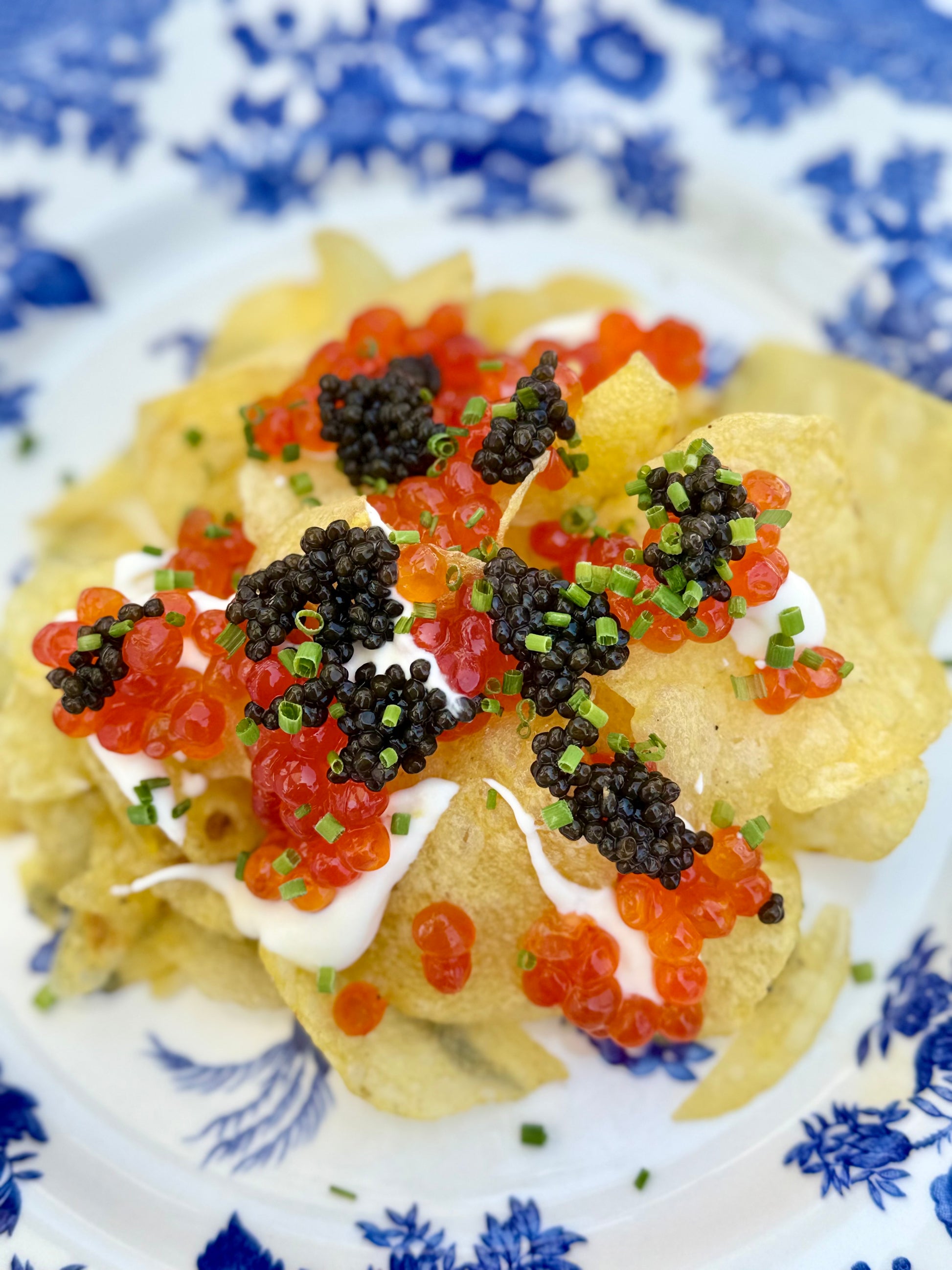 Enjoy a plate of indulgence and laughter shared between your sorella (sister)—crispy, delicate black truffle chips layered with luscious dollops of crème fraîche, crowned with our vibrant red Bombshell caviar and glistening, rich Kaluga Hybrid. Finished with a sprinkle of fresh chives, this playful-yet-luxurious bite is both elevated and effortlessly fun. Whether paired with champagne or simply savored over stories and giggles, it’s the kind of treat that turns sorella time into something truly special.